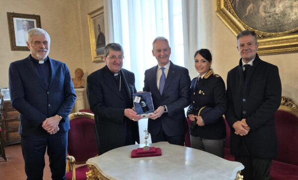 La Polizia di Stato consegna all'Arcivescovo l'olio del Giardino della Memoria