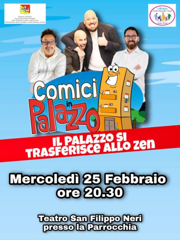 Scopri il divertimento il 25 febbraio al teatro San Filippo Neri con "Il Palazzo si trasferisce allo Zen"! Stand-up comedy e personaggi esilaranti ti aspettano! 🎭😂✨