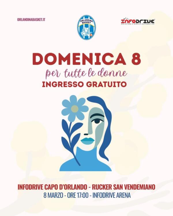Domenica 8 marzo l'Infodrive Capo d'Orlando sfida la Rucker San Vendemiano! 🎉 Ingresso gratuito per tutte le donne! 🏀 Unisciti a noi!